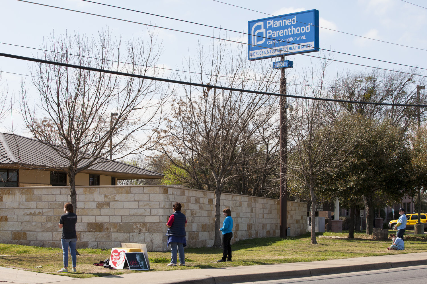 Anti-abortion-rights activists pray outside a Planned Parenthood clinic that offers abortions in 2016 in Austin. Texas has suspended most abortions during the coronavirus pandemic.