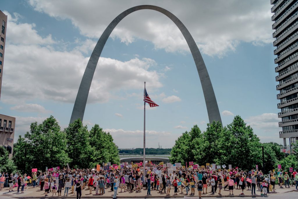 In the wake of Missouri’s controversial abortion legislation, people gather in St. Louis to protest the potential closure of the state’s last remaining abortion clinic, May 2019.