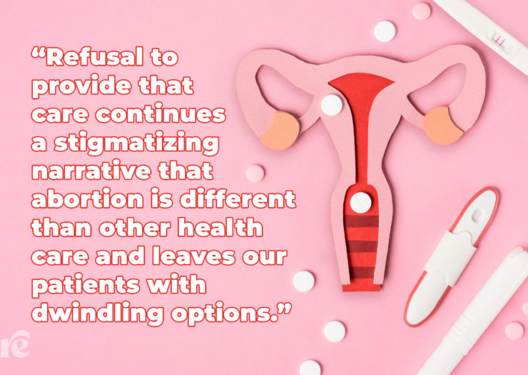 It cannot be that if one of my patients becomes pregnant and wishes to continue to pregnancy, then they are my patient, but that if they wish to have an abortion, I should not care for them. Refusal to provide that care continues a stigmatizing narrative that abortion is different than other health care and leaves our patients with dwindling options.