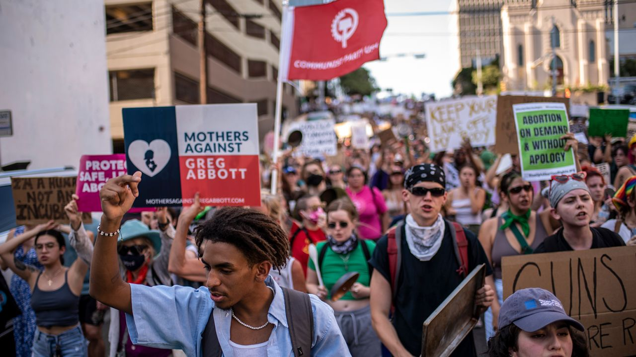 Protesters march in the street during an abortion rights rally on June 25, 2022, in Austin, Texas.