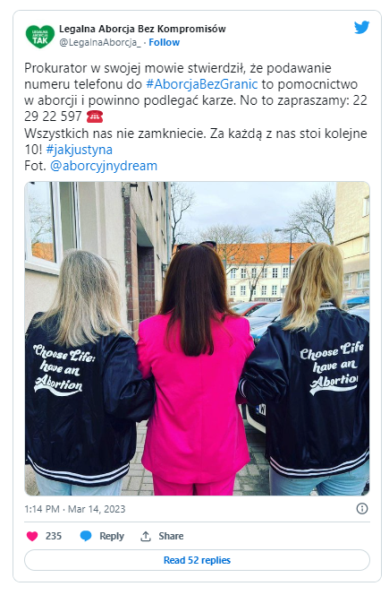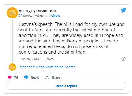 “She was really begging [and] was telling me that she would do everything that to stop the pregnancy,” Wydrzyńska said at the time. “This is why I decided to send the pills, because I also have experience with domestic violence. My husband was also an abuser and a very controlling person.”