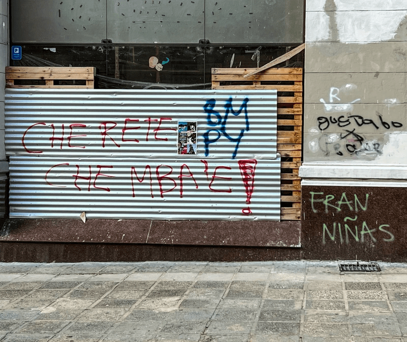 MARCH 8 WOMEN’S DAY PROTESTERS TAGGED A WALL IN DOWNTOWN ASUNCIÓN WITH “CHE RETE, CHE M’BAE”, WHICH MEANS “MY BODY, MY PROPERTY” IN GUARANÍ. MARCH 8 WOMEN’S DAY PROTESTERS TAGGED A WALL IN DOWNTOWN ASUNCION WITH “CHE RETE, CHE M’BAE”, WHICH MEANS “MY BODY, MY PROPERTY” IN GUARANÍ. PHOTO BY NATHANIEL JANOWITZ FOR VICE WORLD NEWS.