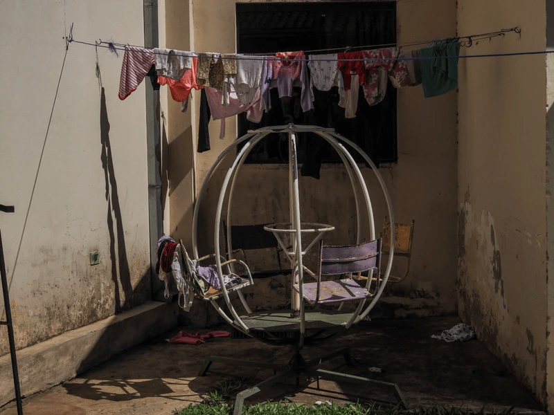 CHILDREN’S CLOTHES DRY ON A PLAYSET AT THE ROSA MARIA HOUSE IN PARAGUAY. PHOTO BY NATHANIEL JANOWITZ FOR VICE WORLD NEWS.