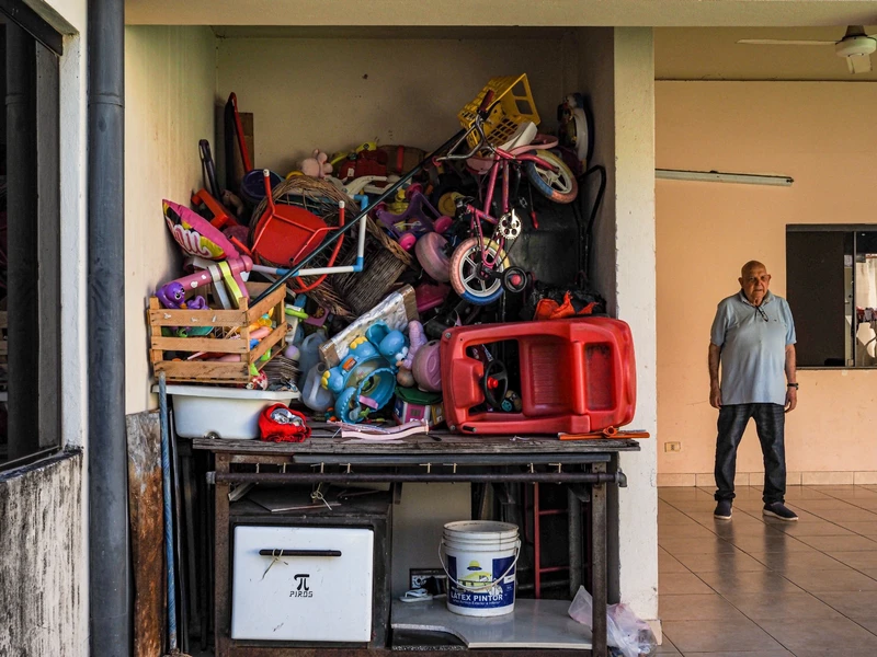 FATHER OSCAR ÁVILA STANDS IN THE HALLWAY NEXT TO A BUNCH OF CHILDREN’S TOYS AT THE ROSA MARIA SHELTER FOR PRETEEN MOTHERS IN ASUNCIÓN, PARAGUAY. PHOTO BY NATHANIEL JANOWITZ FOR VICE WORLD NEWS.