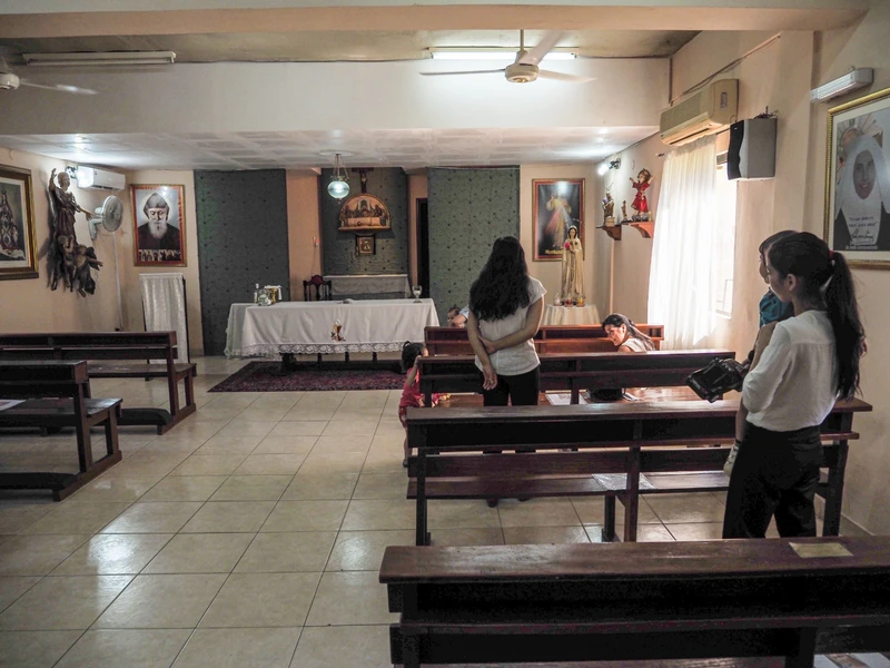 Young girls aged around 12 or 13 wandered around the shelter carrying small children when VICE World News visited in March 2022. The building was made up of a few offices and a chapel where the girls were sent to pray. A courtyard was littered with children’s toys and strollers. The smell of lunch permeated the building as a couple of girls cooked in the kitchen.
