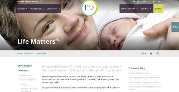 On a page describing its services, Life states an outright opposition to abortion. “Our goal therefore is to inform all people about their intrinsic dignity and how to uphold it,” the page reads. In educational materials designed to be distributed in schools, Life also claims that an abortion could lead to a decline in mental health.